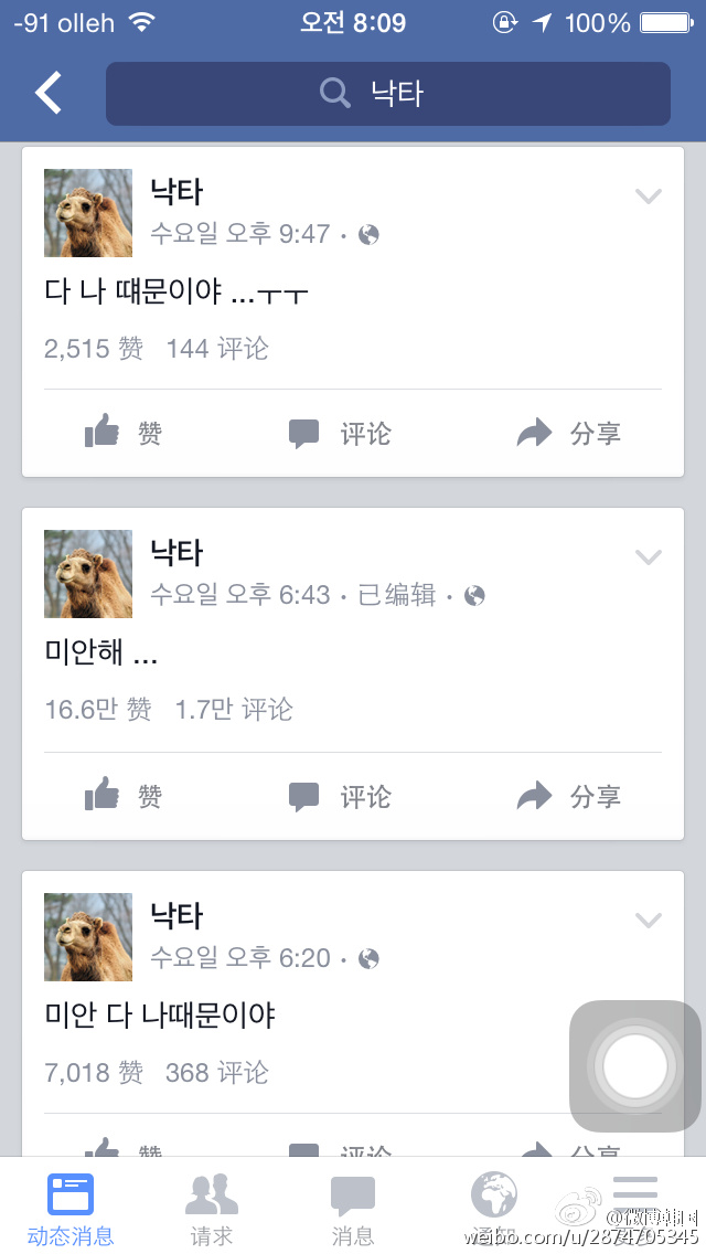 社交网站现骆驼账号自嘲:抱歉!都是我的错