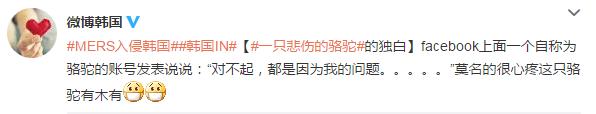 不过,部分韩国民众对“动物园隔离骆驼”很不认同,认为政府在推卸防控不力的责任。韩国各大社交网站内,甚至陆续出现了骆驼为名字的帐号,自嘲称“抱歉!都是我的错。”
