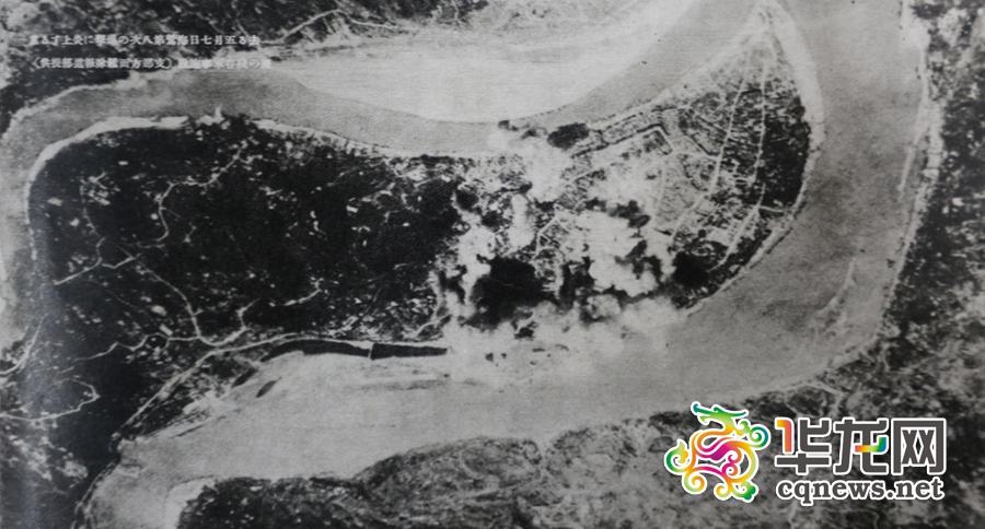 一份来自日军侵略者当年的记录显示:地毯式轰炸重庆——海军飞机第二十六次轰炸重庆。昭和十五年八月九日海军飞机总指挥官樋畑部队长以及铃木部队长所率领的轰炸队下午四点四十分在重庆繁华商业区以及外交部附近海棠炼油工厂、弹药工厂投下炸弹……上方照片:上为嘉陵江,下边的河流是扬子江,下方的岛屿是珊瑚坝机场,可以看到一条白色的混凝土跑道。