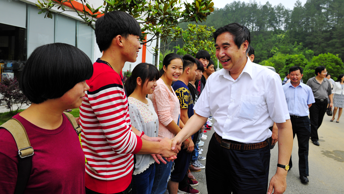 6月3日,黄志贤副主席到贵州盛华职业学院调研时与学生们亲切握手。