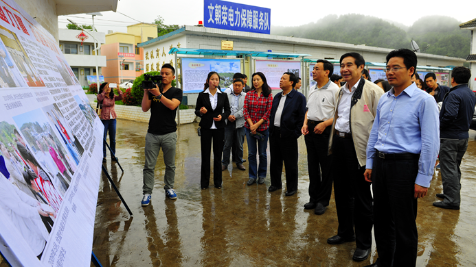 6月4日,黄志贤副主席一行冒雨到赫章县海雀村调研并听取当地工作人员对台盟帮扶海雀村的情况介绍。