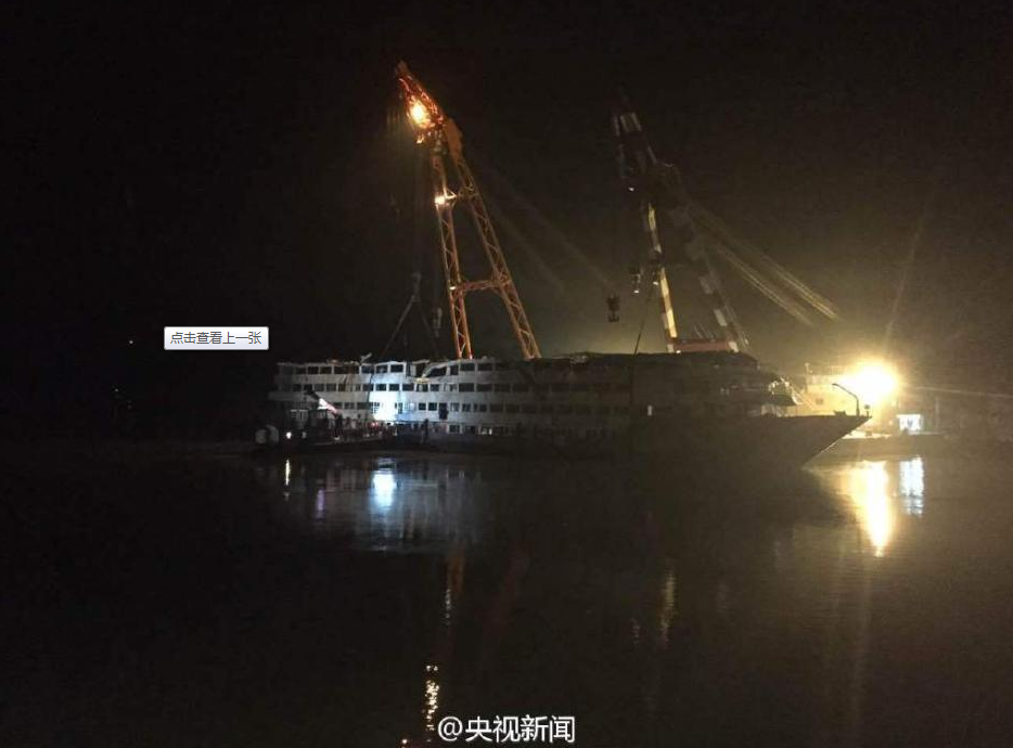 6月9日晚,打捞出水的“东方之星”发生一定程度倾斜,船体向左侧倾斜80厘米。武警官兵现场装沙袋配重调平,将沙袋运上东方之星右侧甲板放置,调平后将等待拖行至安全水域。据了解倾斜原因或与减载、水流等有关。央视记者刘峰 张宗尧 欧阳干湘 图片来源:央视新闻官方微博