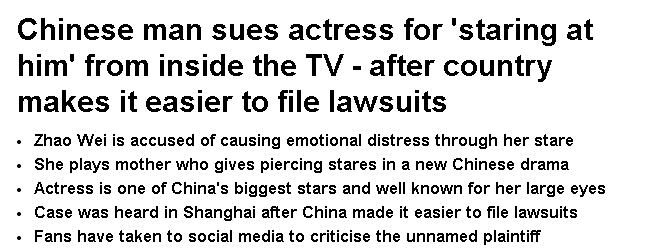 关键词:赵薇遭遇奇葩起诉 《每日邮报》 英国网友