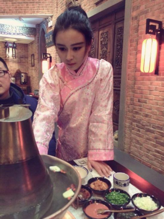 近日网友爆料,一火锅店女服务生在某APP上传的自拍照酷似“翻版范冰冰”。照片中穿着“古装”工作服的女孩在火锅店为顾客点餐服务?;褂性谒奚岷托』锇橐黄鸬纳钫?。网友看后评论“颜值不输范冰冰,”纷纷感叹:“美女在民间!”