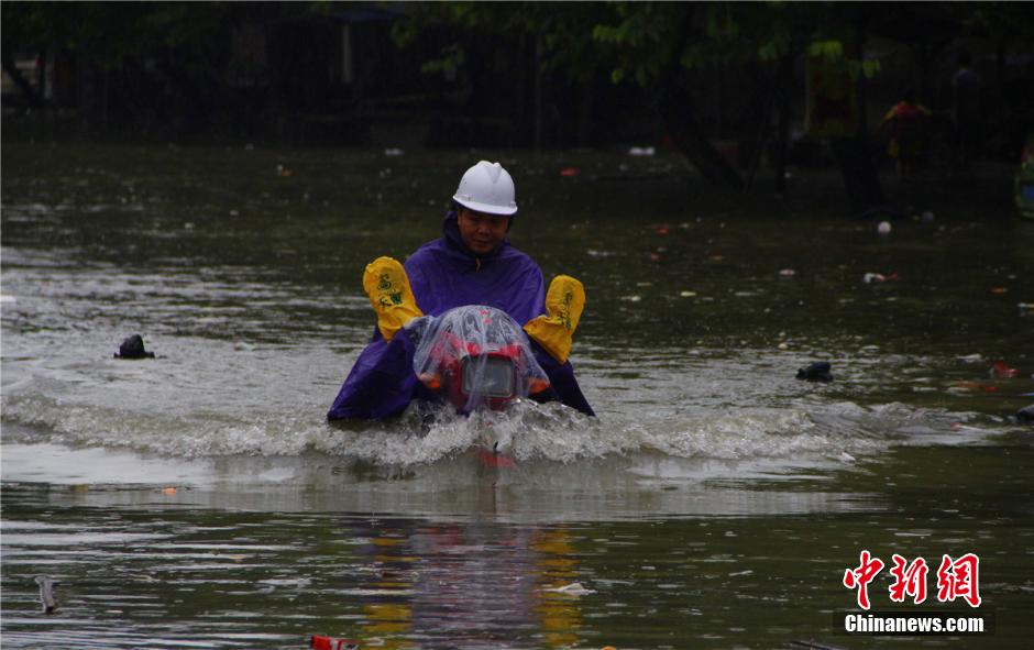 图为6月11日,暴雨致广西柳州市柳江县拉堡镇一街道积水。 朱柳融 摄