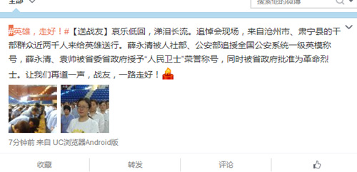 关键词:河北枪击案 牺牲政委 公安系统一级英模