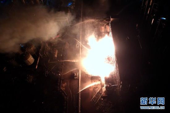 6月12日晚拍摄的火灾现场。江苏南京市化工园区德纳化工厂12日21时15分许发生火灾并引起爆炸。新华社记者韩瑜庆摄