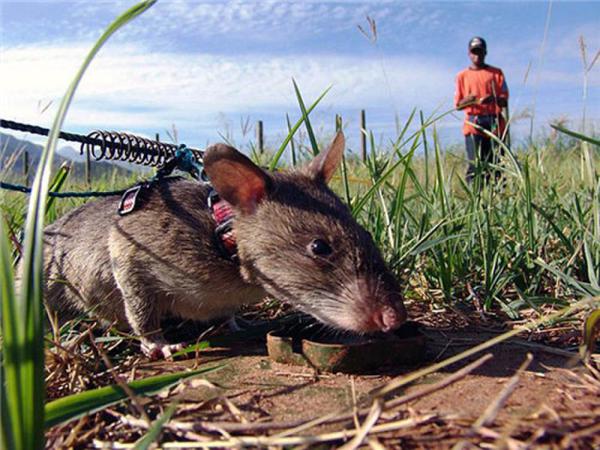 这种巨鼠又被称为“英雄鼠”,安哥拉、莫桑比克等非洲国家已经成功利用其探雷,它们在那里发现2500枚地雷和1.4万颗未爆炸弹。当巨鼠发现地雷时,它们会通过抓记号和吱吱叫声通知驯兽师。