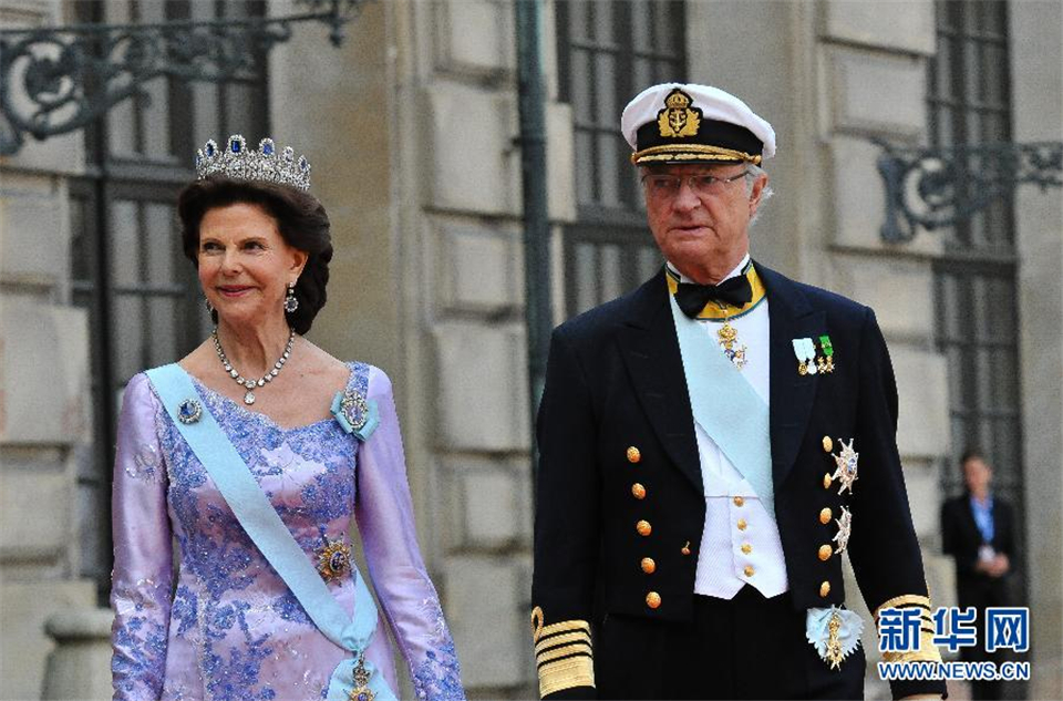 当地时间6月13日,在位于瑞典首都斯德哥尔摩市中心的瑞典王宫,瑞典国王卡尔十六世·古斯塔夫和西尔维娅王后出席菲利普王子的婚礼庆典。当日,瑞典王子卡尔·菲利普与索菲娅·赫尔奎斯特在斯德哥尔摩老城的王室教堂完婚。