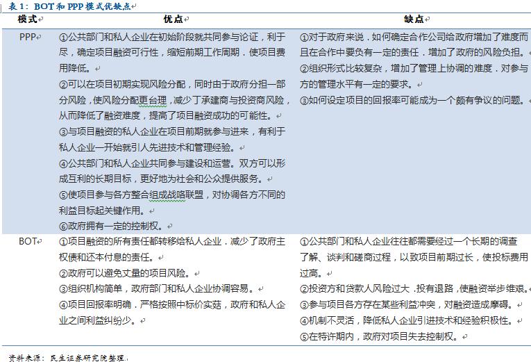 但从合作关系而言,BOT中政府与企业更多是垂直关系,即政府授权私企独立建造和经营设施,而不是与政府合作,PPP通过共同出资特殊目的公司更强调政府与私企利益共享和风险分担。
