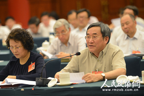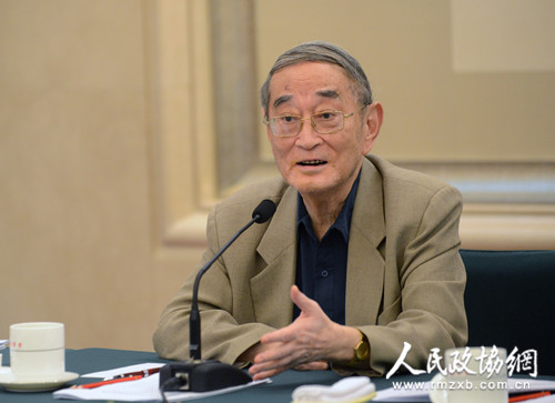 厉以宁常委在专题分组讨论会上发言 本报记者 齐波 摄