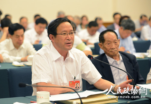 陈章良常委在专题分组讨论会上发言 本报记者 齐波 摄