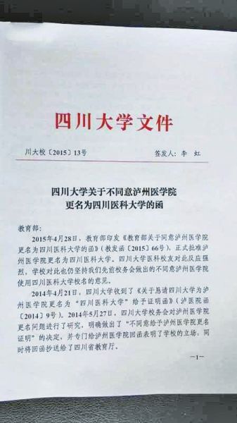 核心提示2015年4月28日,教育部发函同意泸州医学院改名“四川医科大学”。这一更名引起四川大学华西医学中心海内外老校友的反对。