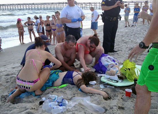 6月15日报道,在美国北卡罗来纳州栎树岛海滩,90分钟的时间里先后有2个孩子的手臂被鲨鱼袭击咬掉。一名12岁的小女孩左臂被从肘部咬断,并且腿部肌肉组织受伤;另一名受伤人员是一个16岁的男孩,从肩膀处被咬断了一只胳膊。两名受伤者都不是当地人,受伤的小女孩是来这里探亲的。由于情况极其紧急,他们两个都是被空运走的。
