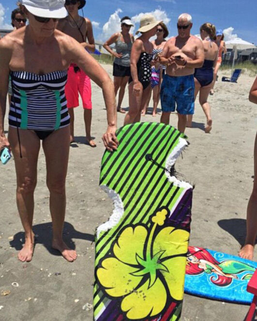 在本周此地已经有3人受到鲨鱼袭击,之前是一名13岁的小女孩,她的冲浪板都被咬坏了,她的一只脚在事件中被咬掉。