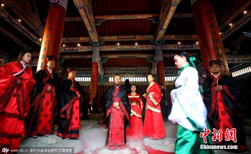 2015年06月16日,石家庄,河北美术学院文庙前彩旗飘扬,气球高悬,659名学生及全体校领导身着传统汉服齐聚学校文庙,在这里隆重举行2015年河北美术学院学士学位授予仪式,现场古风汉韵,时光仿佛穿越回了“大汉盛世”时期。图片来源:CFP视觉中国
