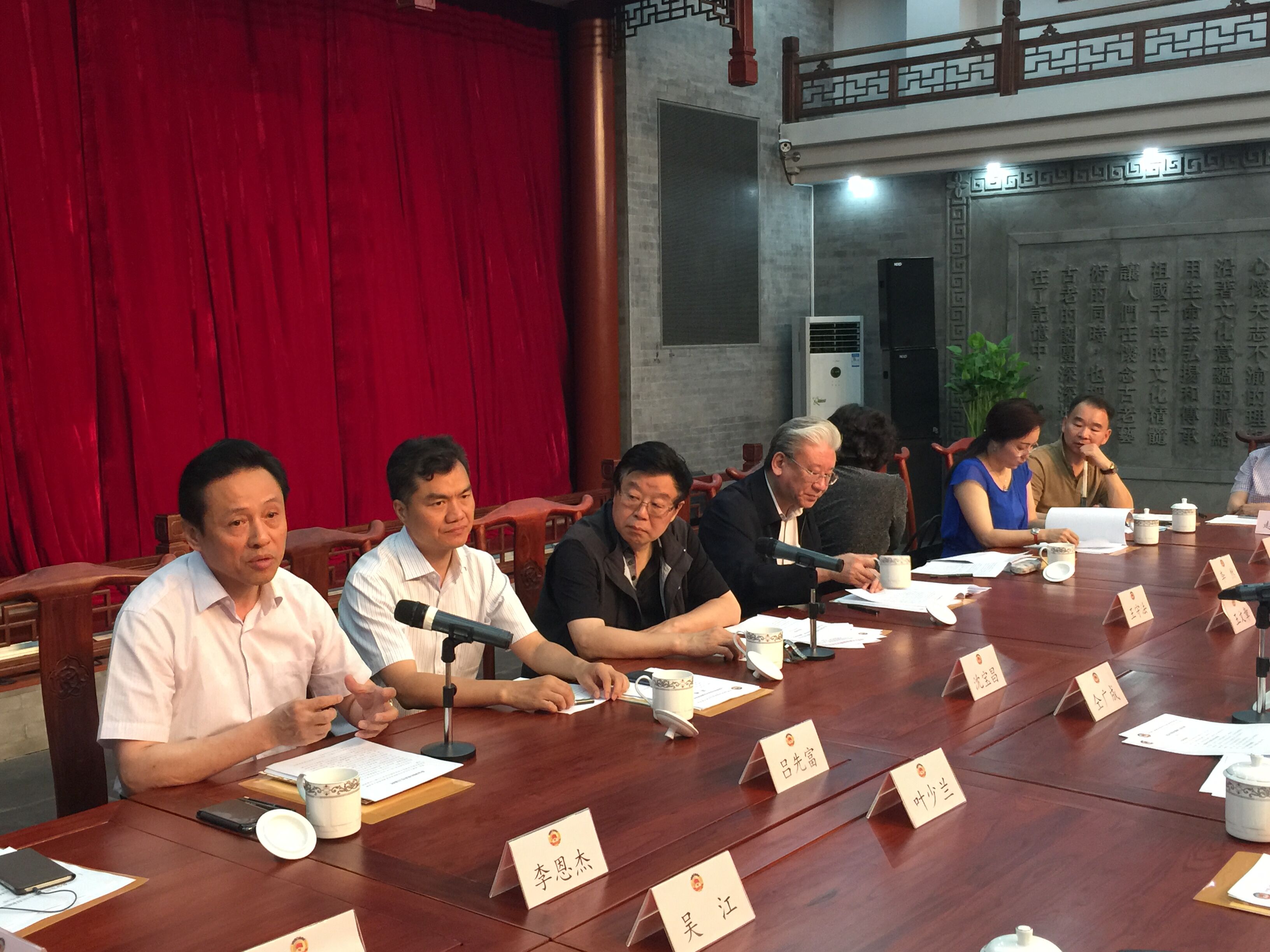 人民政协网北京6月24日讯(记者 付裕 王沥康) 全国政协京昆室24日组织部分全国政协委员,就“充分发挥戏曲在培育和践行社会主义核心价值观中的重要作用”赴北京市调研,全国政协委员仝广成、王文章、叶少兰、杨承志、吴江、孙毓敏、李胜素、孙萍等参加调研,北京市政协副主席沈宝昌等陪同调研。图为委员们在北京风雷京剧团调研并召开座谈会。