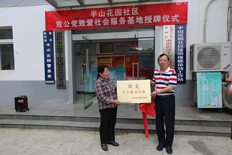 6月21日,致公党安徽省马鞍山市委会致爱社会服务基地在马鞍山半山花园社区举行揭牌仪式,致公党马鞍山市委会主委徐业志为基地成立揭牌。