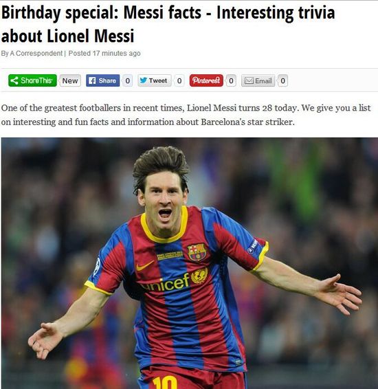 28年前的今天,梅西在阿根廷出生,28年后的今天,梅西成为了当今世界足坛的超级球星。英国媒体《mid-day》也在这个特别的日子里也为球迷们盘点了一下小跳蚤的一些小趣闻。