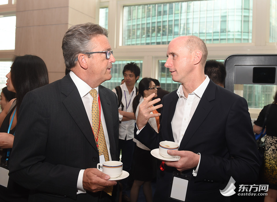 “2015陆家嘴论坛”6月26日在沪开幕。大会茶歇间隙,与会嘉宾热切交流,并接受媒体采访。证监会主席肖钢一走出会场,就受到了媒体的围堵采访。对于股市能否站上8千点的问题,肖主席笑而不语,匆匆离场。今天上午,沪指开盘一度跌破了4400点,多只个股泛绿。