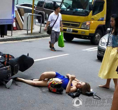 腾讯体育讯 近日,香港20岁李姓女子告诉驾驶机车过程中,为躲避路人不慎摔倒,身着连身短裤的女子与机车一同倒地,机车碎片、皮包散落一地,随后该女子不顾腿部伤情,侧卧淡定滑手机,被途径网友拍下爆红网络。