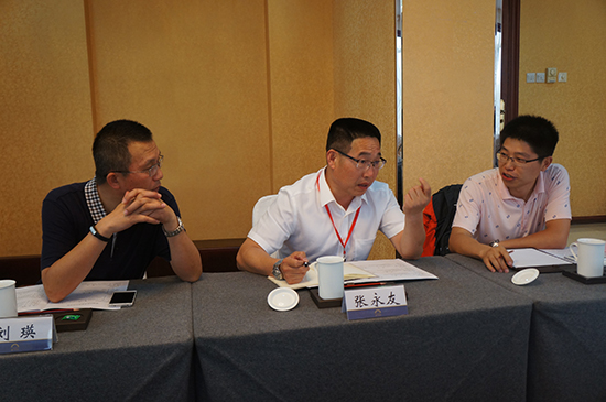第三组讨论现场,青岛市政协与会代表张永友(中)就政协提案现代信息化平台建设再次做出讲解。