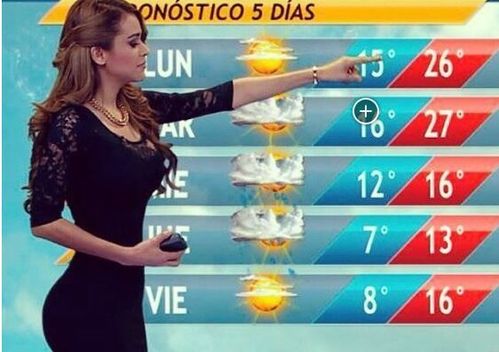 墨西哥天气主播Yanet Garcia有前凸后翘的火辣身材和甜美笑容,迅速走红,据说“全墨西哥都爱天气预报”!也有美国网友嫉妒:??怂剐挛派妒焙虬阉诠?