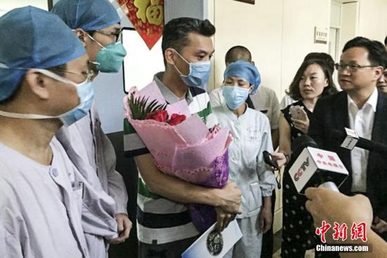 6月26日,广东惠州救治的中国首例中东呼吸综合征(MERS)输入性病例金某(韩国籍),经专家评估,符合出院标准,出院返回韩国。中新社发 钟欣 摄
