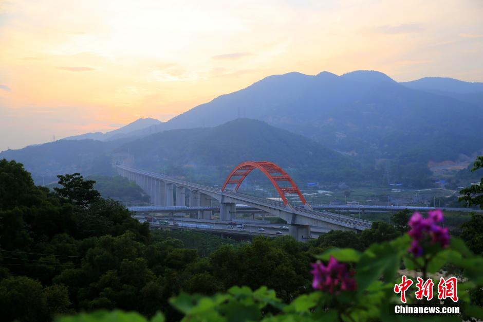图为黄昏中的跨西岭互通特大桥。姚云龙 摄