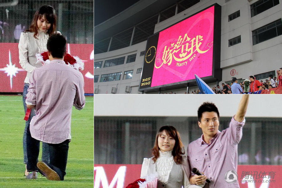 2012年中超申鑫和申花的上海德比大战里,申鑫门将朱建敏在中场休息的时候向女友求婚。在数万上海球迷的见证下,两人深情相拥尽显浪漫.