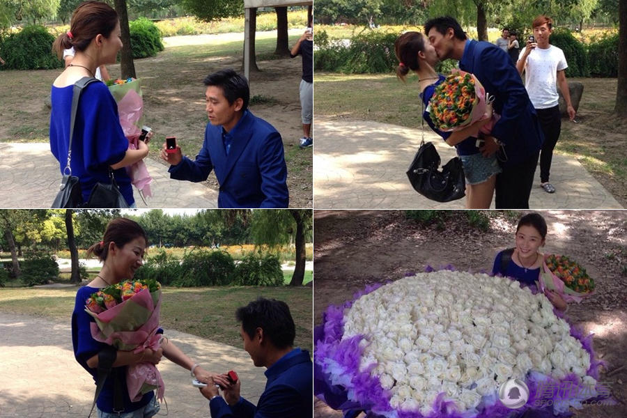 2013年国庆节期间,申花预备队教练成亮向女友求婚。成亮在现场布置了365朵白玫瑰,尽显浪漫。当女友答应了成亮的求婚请求后,两人便幸福的拥吻在一起。