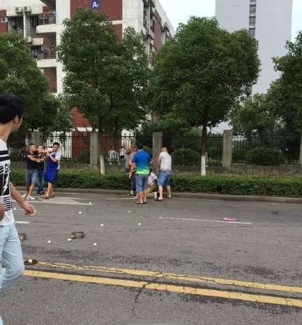 武汉东湖新技术开发区流芳园中路,数名男子当街挥舞棍棒殴打早点摊主,场面触目惊心。
