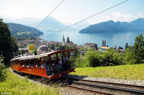 瑞吉火车站附近风光,此处靠近阿尔卑斯山和卢塞恩(琉森)湖,吸引了许多亚洲游客。