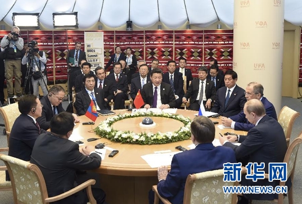 新华网俄罗斯乌法7月9日电(记者 侯丽军)7月9日,国家主席习近平在乌法同俄罗斯总统普京、蒙古国总统额勒贝格道尔吉举行中俄蒙元首第二次会晤。