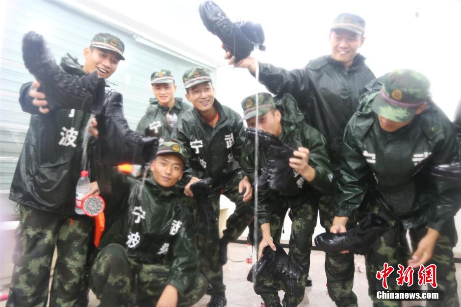 第9号台风“灿鸿”挟风裹雨袭击浙江沿海,浙江姚江受特大暴雨影响水位不断上涨,相继出现道路受阻、村庄被淹等灾难。武警宁波支队紧急出动150名武警官兵迅速开赴该余姚地区进行抢险,5小时内,官兵顶风冒雨装填沙袋360吨。在救灾现场,官兵们的战靴都能直接倒出水来,而轮休下来的几十名官兵因近日来超负荷运作,直接蜷曲在狭窄的廊道倒地而睡。李宁 摄