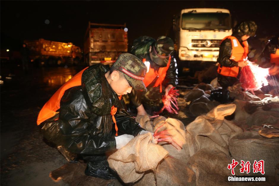 第9号台风“灿鸿”挟风裹雨袭击浙江沿海,浙江姚江受特大暴雨影响水位不断上涨,相继出现道路受阻、村庄被淹等灾难。武警宁波支队紧急出动150名武警官兵迅速开赴该余姚地区进行抢险,5小时内,官兵顶风冒雨装填沙袋360吨。在救灾现场,官兵们的战靴都能直接倒出水来,而轮休下来的几十名官兵因近日来超负荷运作,直接蜷曲在狭窄的廊道倒地而睡。李宁 摄