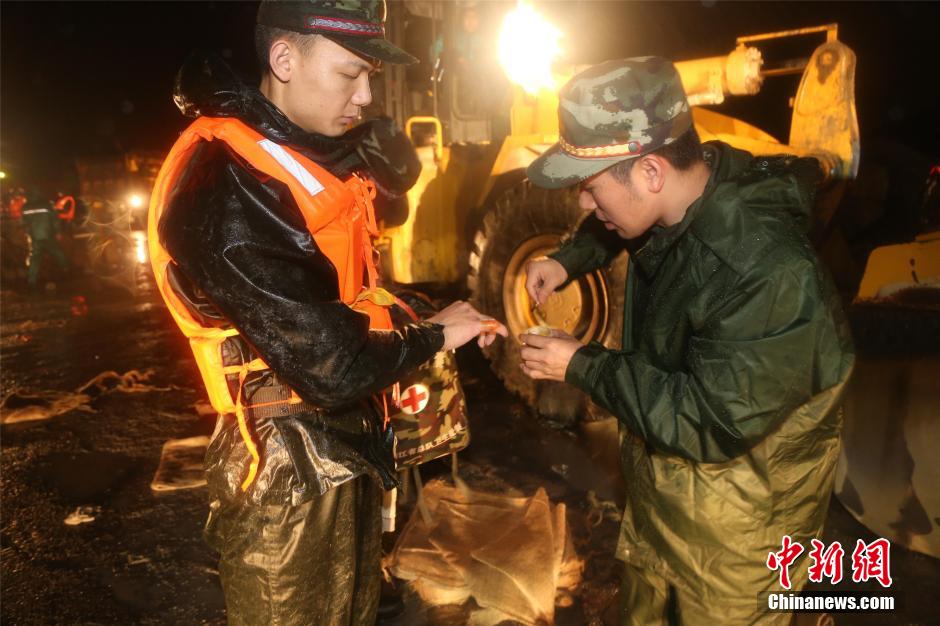 第9号台风“灿鸿”挟风裹雨袭击浙江沿海,浙江姚江受特大暴雨影响水位不断上涨,相继出现道路受阻、村庄被淹等灾难。武警宁波支队紧急出动150名武警官兵迅速开赴该余姚地区进行抢险,5小时内,官兵顶风冒雨装填沙袋360吨。在救灾现场,官兵们的战靴都能直接倒出水来,而轮休下来的几十名官兵因近日来超负荷运作,直接蜷曲在狭窄的廊道倒地而睡。李宁 摄
