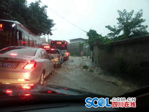 泸州全境普降暴雨 能见度极低 部分路段积水深