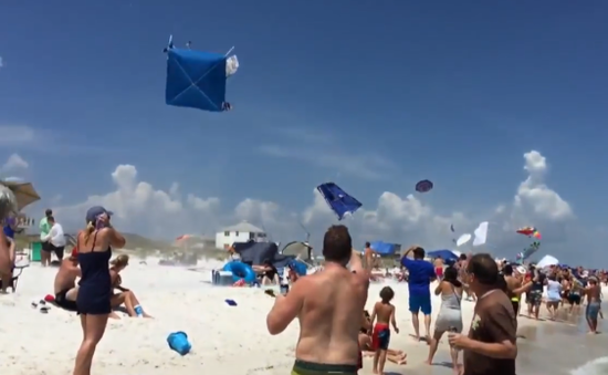 F-18飞行员调皮 超低空飞行吹飞沙滩帐篷