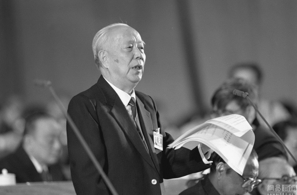 全国人大常委会原委员长万里逝世,享年99岁。图为1988年4月13日,七届人大一次会议闭幕,人大常委会委员长万里在大会上讲话。