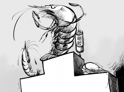 日前,温州市民郑女士在瑞安城区南门农贸市场买了3只大虾,回家后发现大虾体内竟然被注入了不明胶状物。市场监管部门当即调查,涉事摊贩表示无辜并退款,已经卖了十来斤。有摊贩讲,把明胶注射到虾身上,一来增分量,二来卖相好,“明胶虾”很多地方都有。注水肉、明胶虾,不法商贩牟利的损招真不少,消费者简直防不胜防。监管部门追查、究责自不必说,郑女士揭出猫腻仅仅退款了事,是不是太不给力了? 漫画 勾犇