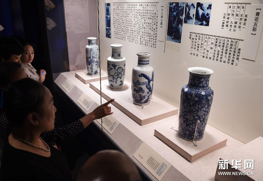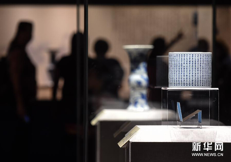 2015年7月14日,由首都博物馆和故宫博物院联合举办的《盛世风华——大清康熙御窑瓷》展在首都博物馆开展。展览甄选了100件康熙御窑瓷器,其中有不少首次走出库房、走出故宫的瓷器??滴跤ご善髟谥泄沾煞⒄故飞嫌芯僮闱嶂氐睦返匚唬坛辛嗣鞔暗抡虼梢档挠帕即?,表现出规矩、挺拔、大气和豪放的特色。新华社记者 罗晓光 摄
