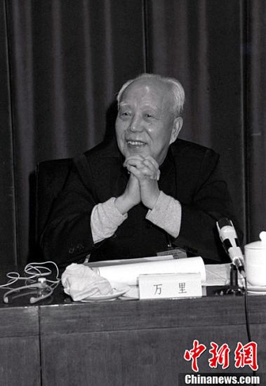 中国共产党的优秀党员,久经考验的忠诚的共产主义战士,杰出的无产阶级革命家、政治家,党和国家的卓越领导人,中国共产党第11届、12届中央书记处书记,第12届、13届中央政治局委员,国务院原副总理,第七届全国人民代表大会常务委员会委员长万里同志,因病医治无效,于7月15日12时55分在北京逝世,享年99岁。资料图。中新社发 吕相友 摄 图片来源:CNSPHOTO