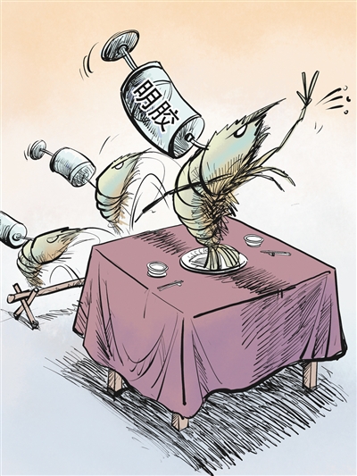 浙江温州的郑女士在农贸市场买了3只大虾,回家后剥开虾壳清洗时,却从虾头与身体里掉落了一些胶状物。当地市场监管局已介入调查。业内人士称,给虾“注胶”能增加重量,卖相也更好。