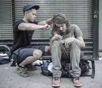 据外媒日前报道,纽约街头有一名亚裔小伙总会在周日的下午,带着一整套理发工具为街头流浪汉理发塑造型,经过他一手打造,流浪汉判若两人,理完发后“帅到掉渣”。