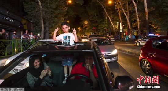图为德黑兰街头庆祝的伊朗民众。