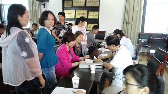 ▲7月8日,农工党黄山市黄山区总支卫生支部联合黄山区中医院在龙西社区开展了“中医药进社区义诊服务”主题活动?;疃校┕さ吃泵敲夥盐褐诓饬垦寡?、查体诊治和发放宣传资料,还就“冬病夏治”作了专题讲座,受到了社区居民的一致好评。义诊活动为农工党员联系群众、服务群众搭建了良好的平台。汪晓艳摄