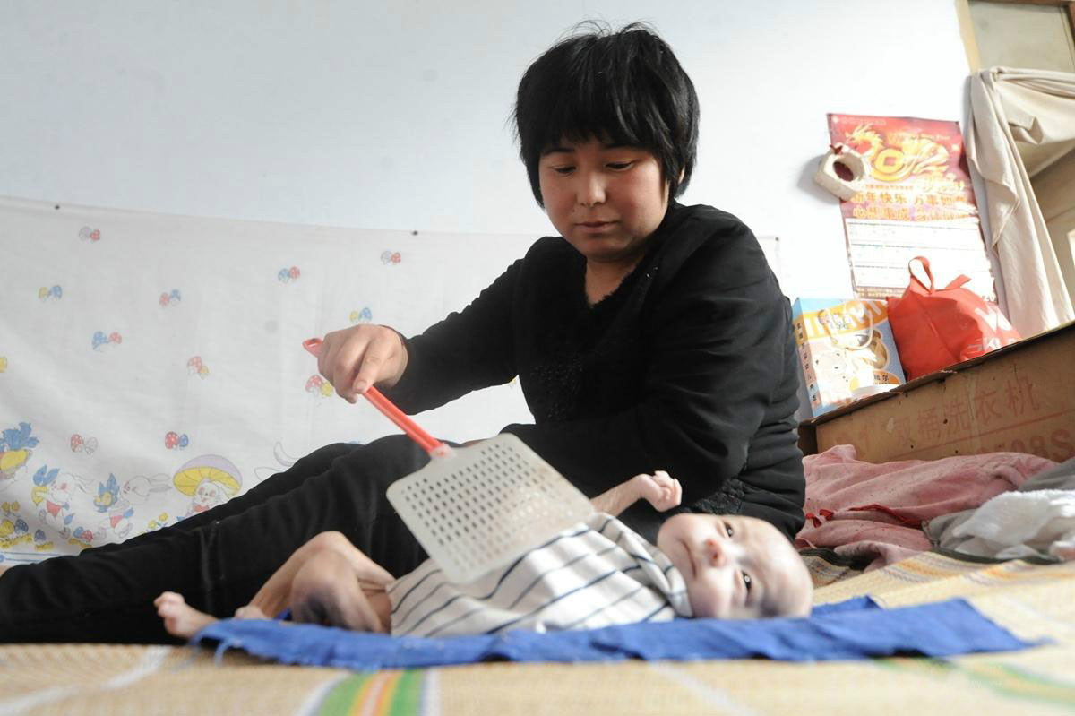 简陋的房屋里,靠墙的床上皮包骨的小恩泽微弱地哭泣着,身旁的妈妈任明娥静坐在床上,从出生那天起,孩子就没喝过一口妈妈的奶。24岁的任明娥先天弱智,连最简单的10个数字都念不全。