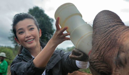 随后,李冰冰转发该微博,称“人一天要补充1.5L的水分,非洲成年象平均一天要补充100L的水分。她达标了,你呢?”