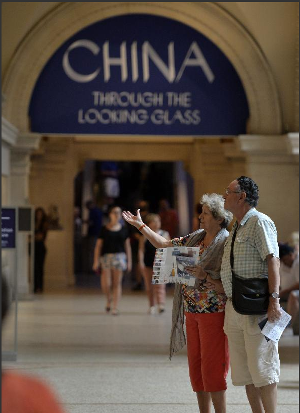 7月28日,参观者在美国纽约大都会艺术博物馆中国瓷器展厅前参观。